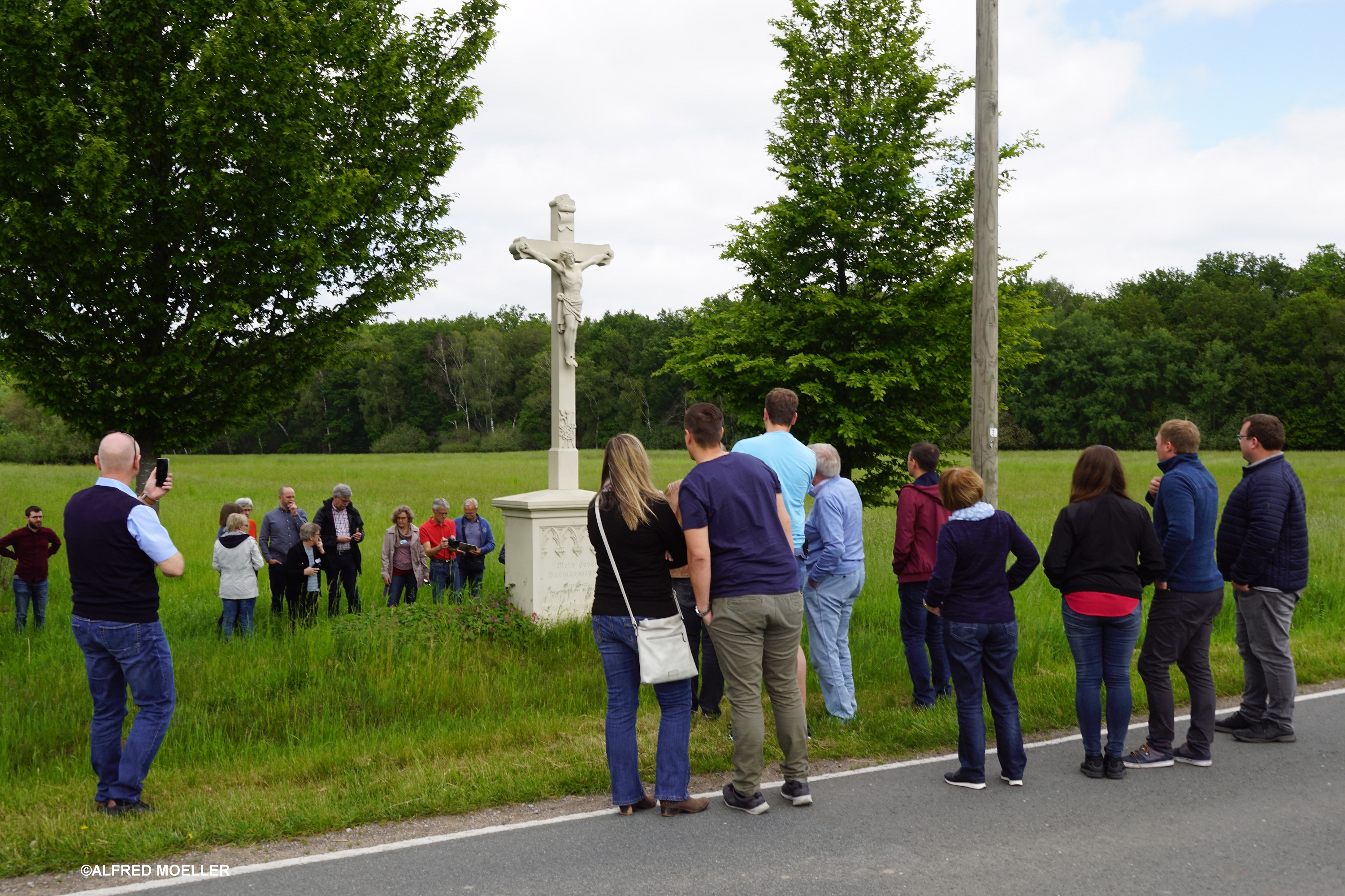 Das Kreuz auf dem Kirchplatz in Milte, errichtet nach einer Erschein- ung die der Heuerling Bernhard Dartmann gehabt haben soll.